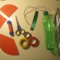 Для поделки необходимо взять: пластиковую бутылку 0,5 мл., фольгу, 3 заготовки для конусов из плотной бумаги,полоску из гофрированного картона, разноцветную изоленту,...