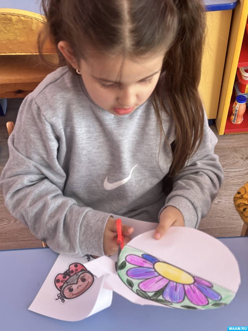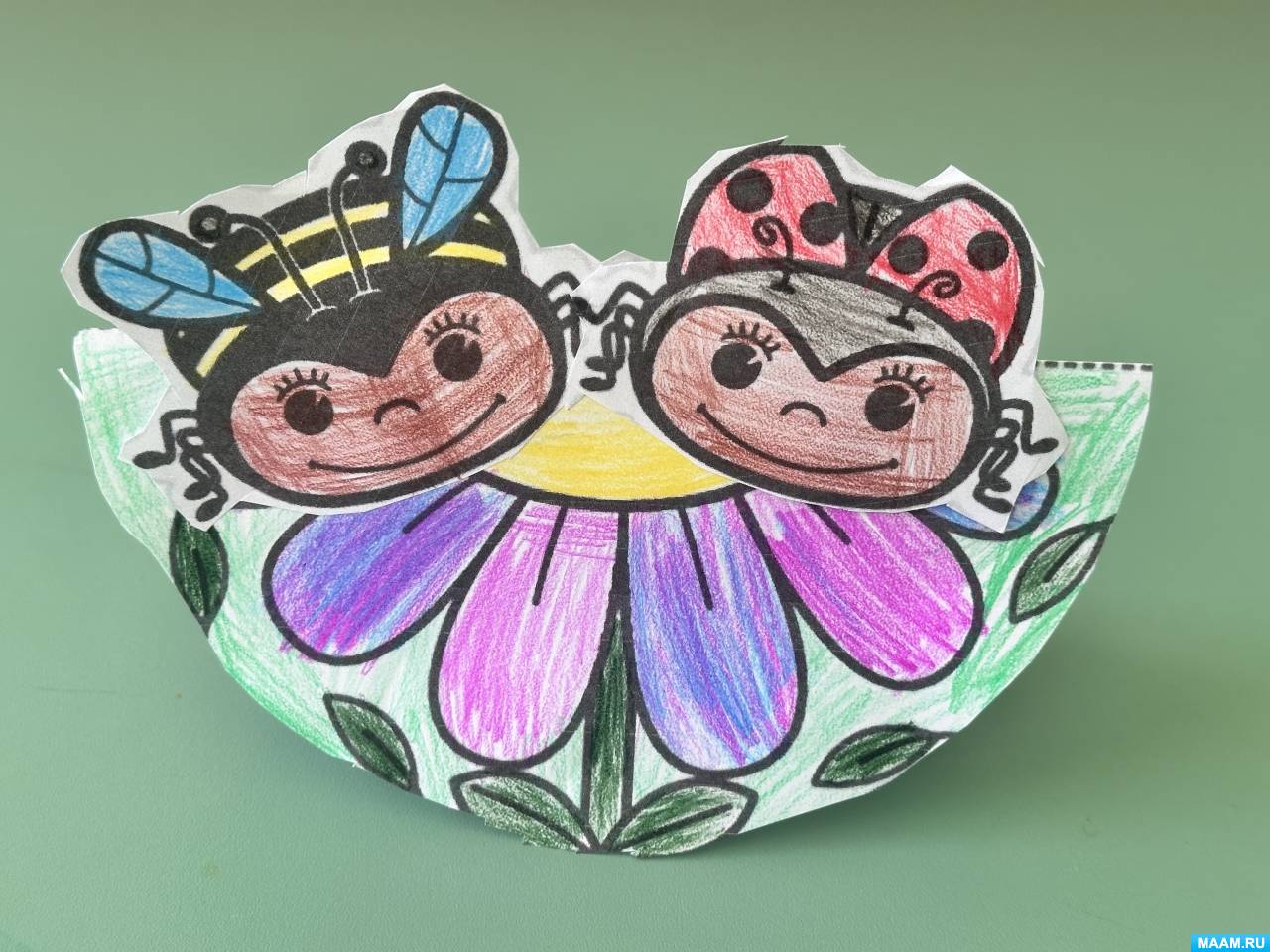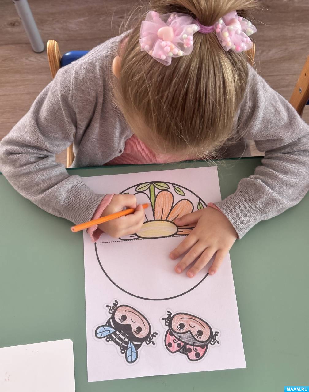 «На полянке». Детский мастер-класс по конструированию поделки-качалки из бумаги и рисованию цветными карандашами