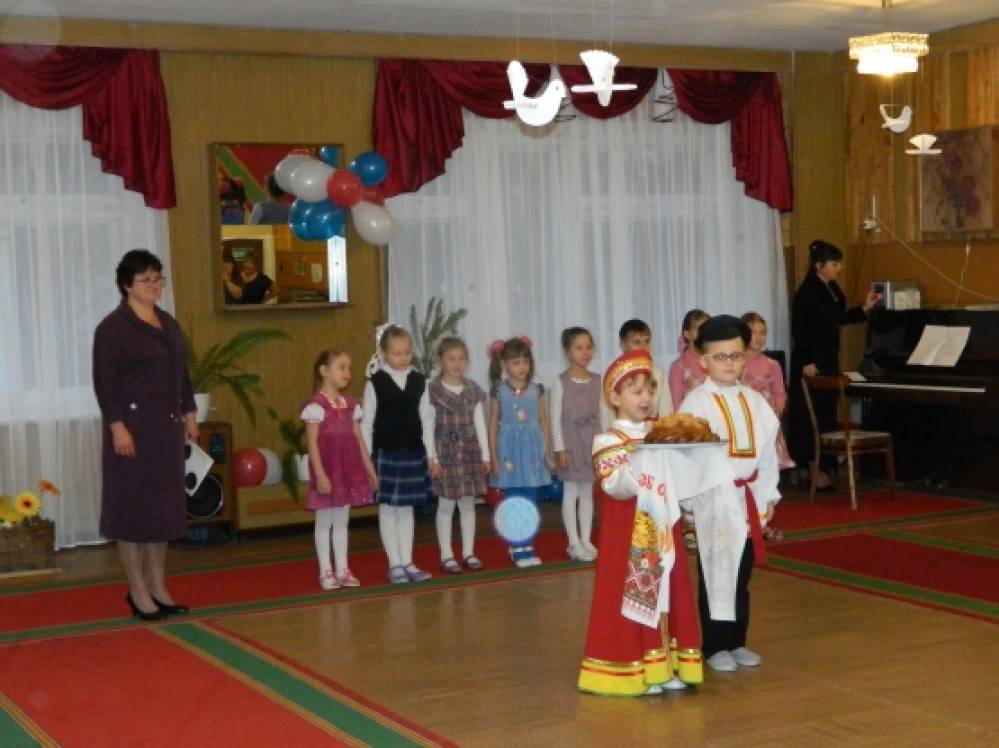 Воспитатель: - Сегодня к нам приехали гости. По русскому обычаю гостеприимства встречаем дорогих гостей хлебом с солью: