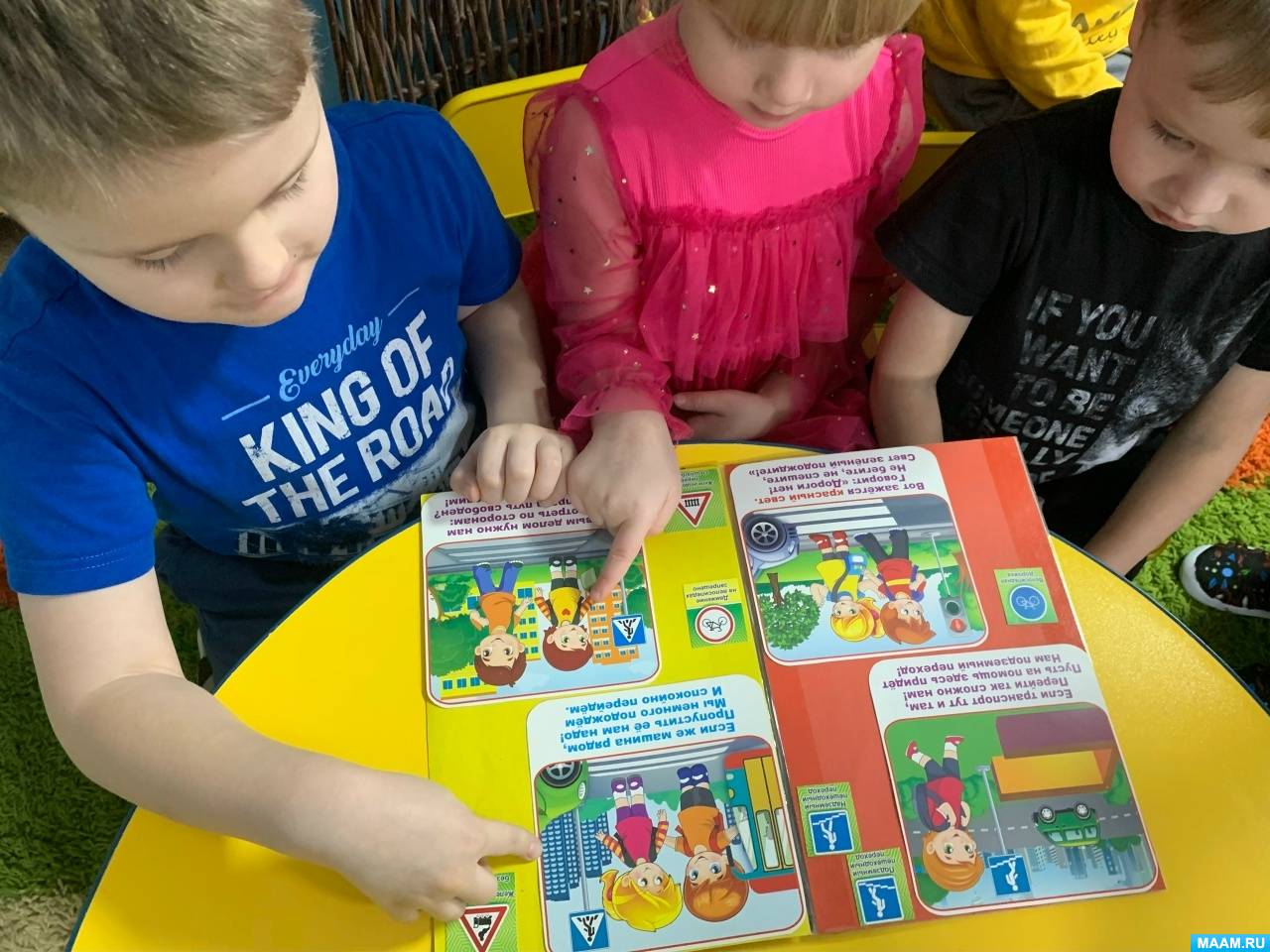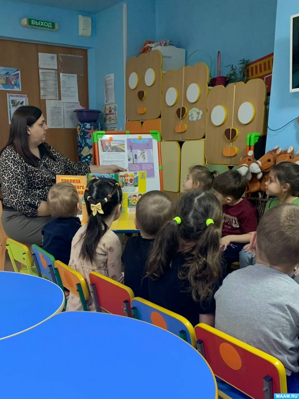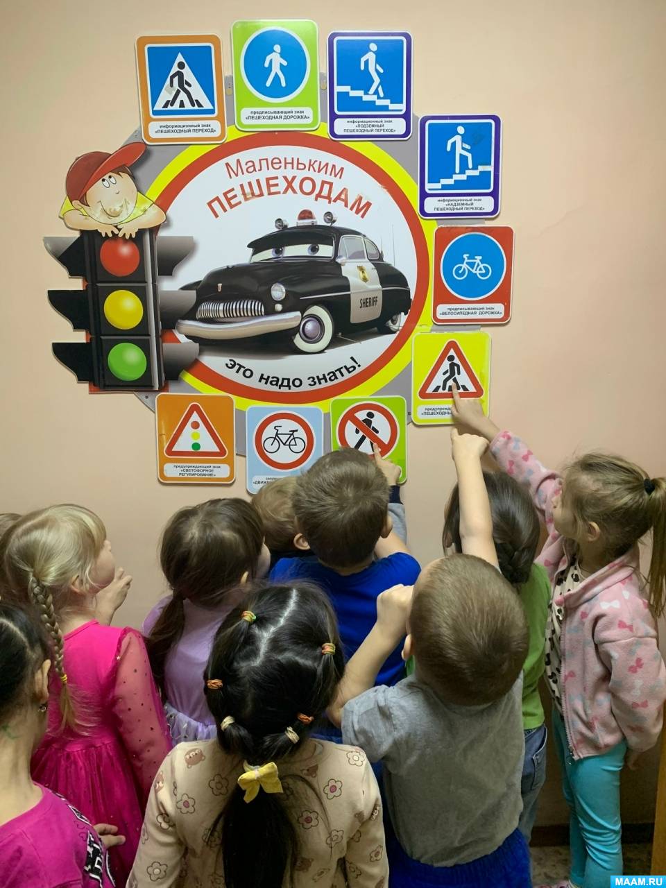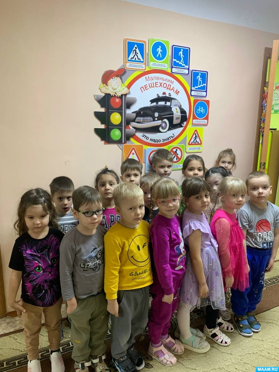 «Правильно! Машины едут по проезжей части, а пешеходы – по тротуару. Давайте все вместе скажем: “Я – пешеход!”»