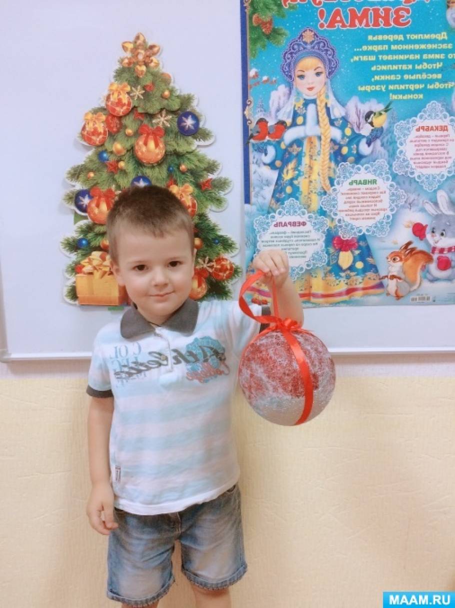 декорированный новогодний шарик Семена получился очень воздушным