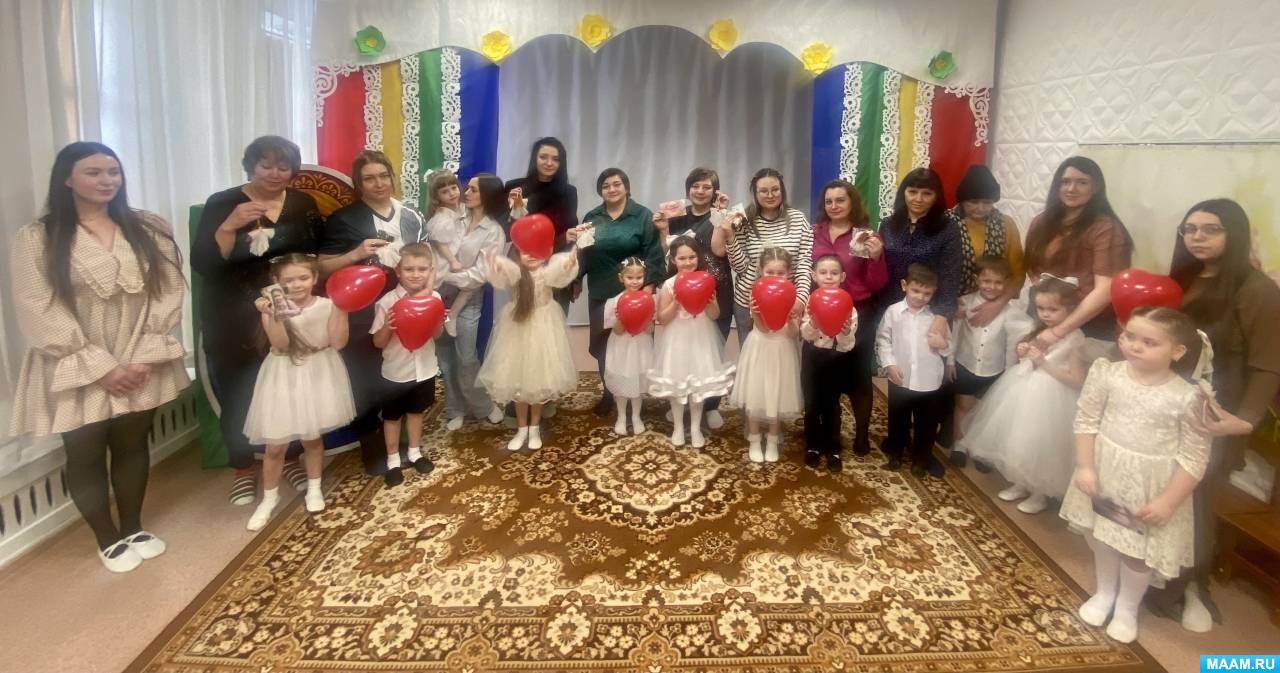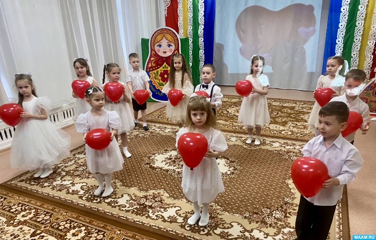 В это время ребята за кулисами сменили образ и взяли в руки сердечки.