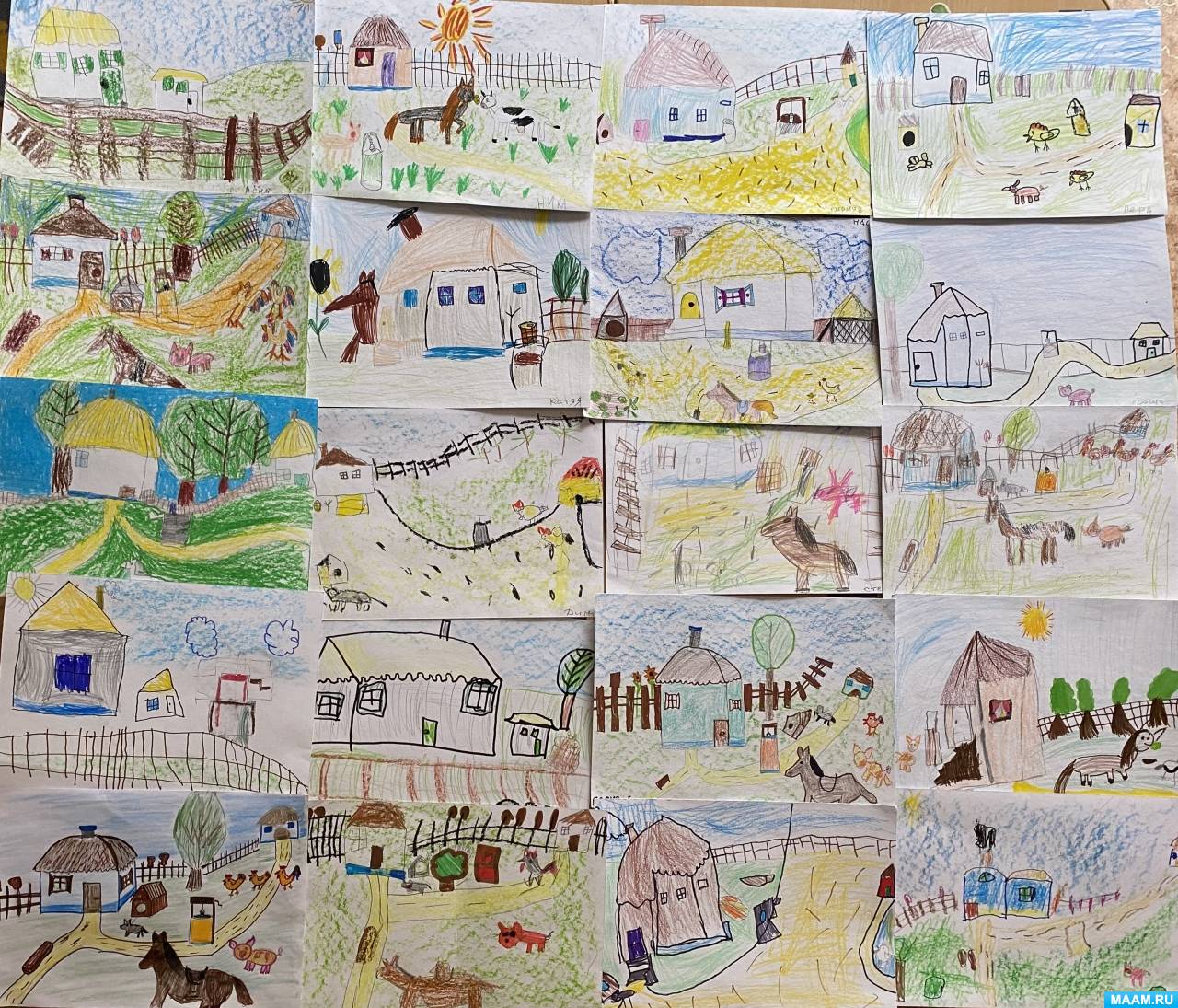 Дети нарисовали казачьи хаты и подворья, выразив в рисунках своё понимание истории.