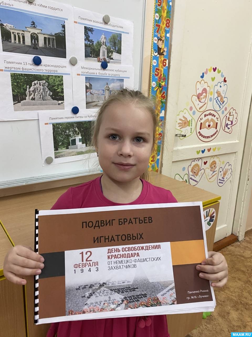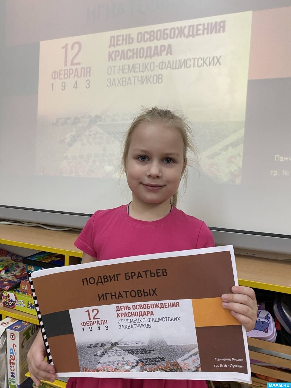 Римма с родителями подготовила рассказ о подвиге братьев Игнатовых. Наших земляках. Ребята внимательно вслушивались в каждое слово. После завязалась дискуссия о родах войск, защищавших город в годы войны, о партизанском движении, об операции «Рассвет».