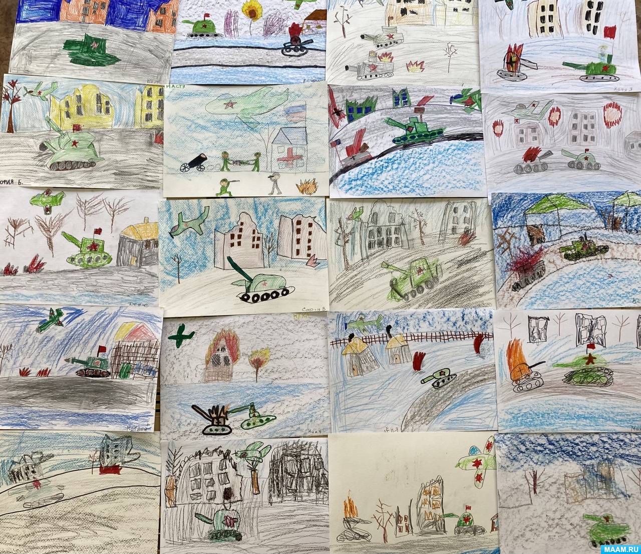 Ребятам было предложено нарисовать день освобождения города от врагов, каким его представляют.