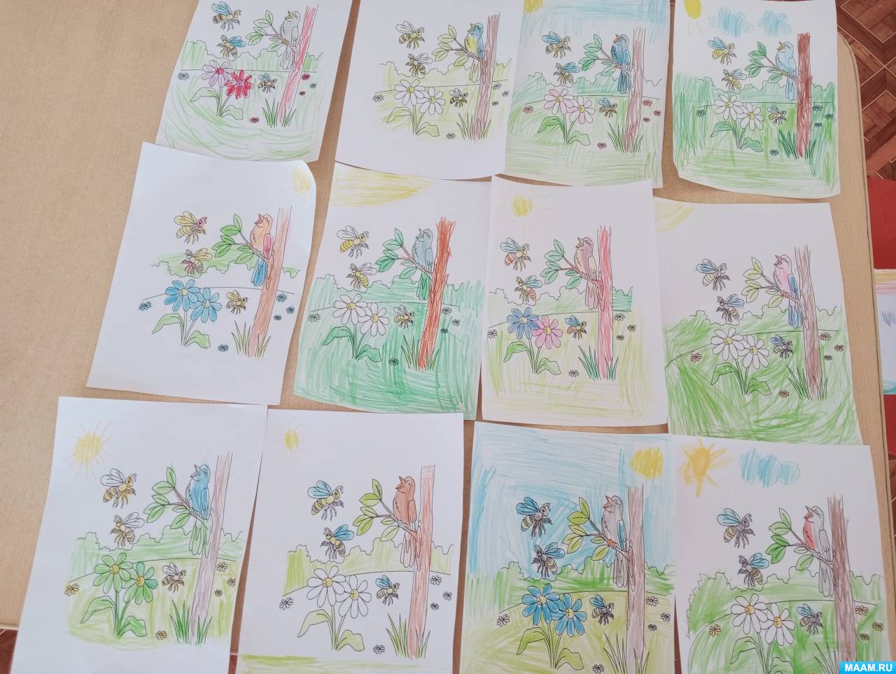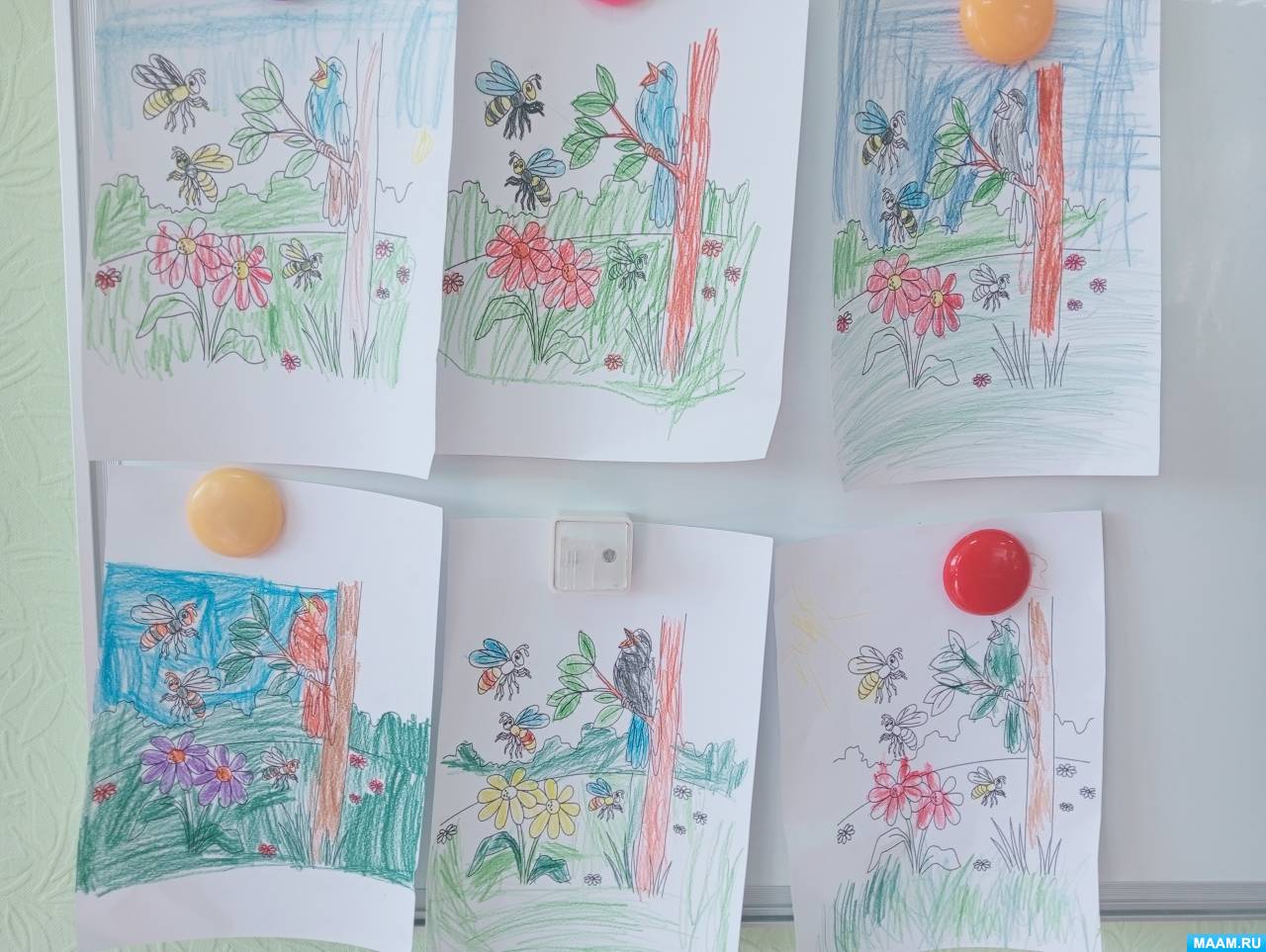 Дети повторяют названия весенних месяцев, вывешивают свои работы на доску.