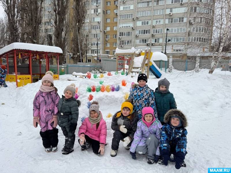 2. Учить детей украшать участок детского сада, создавать необычные композиции из снега и льда.