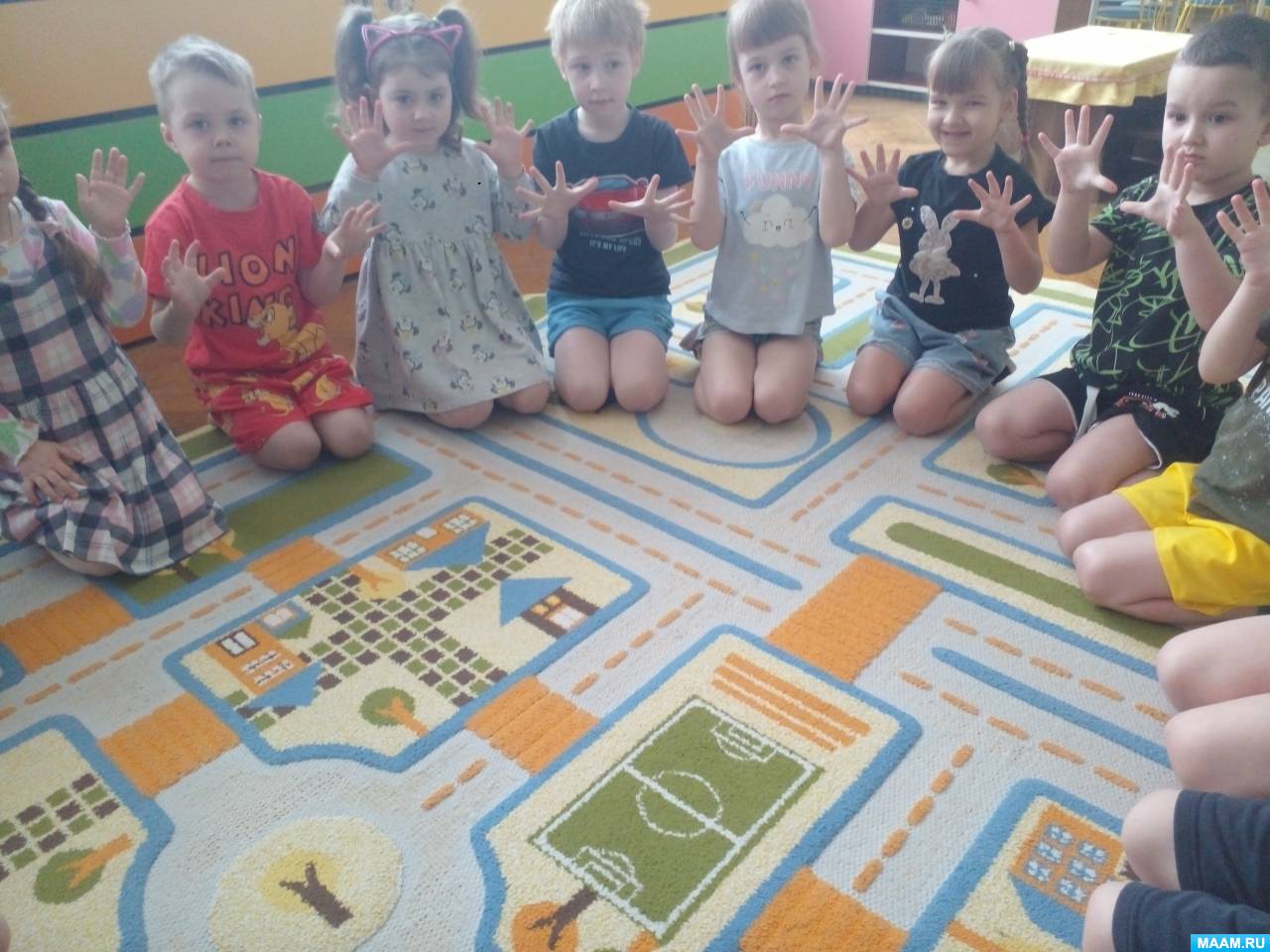 Цель: создание положительного микроклимата на занятии, развитие общей и мелкой моторики.