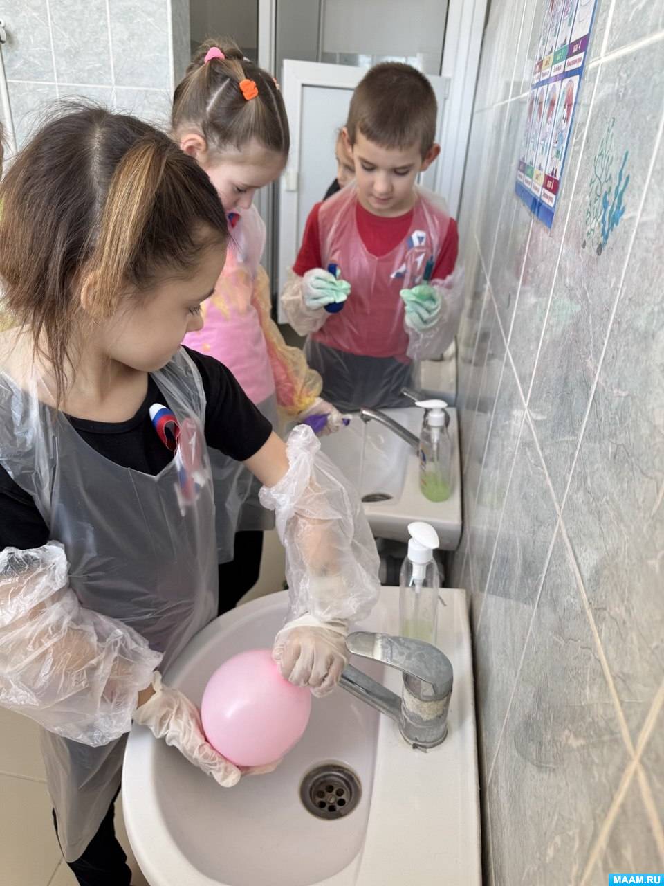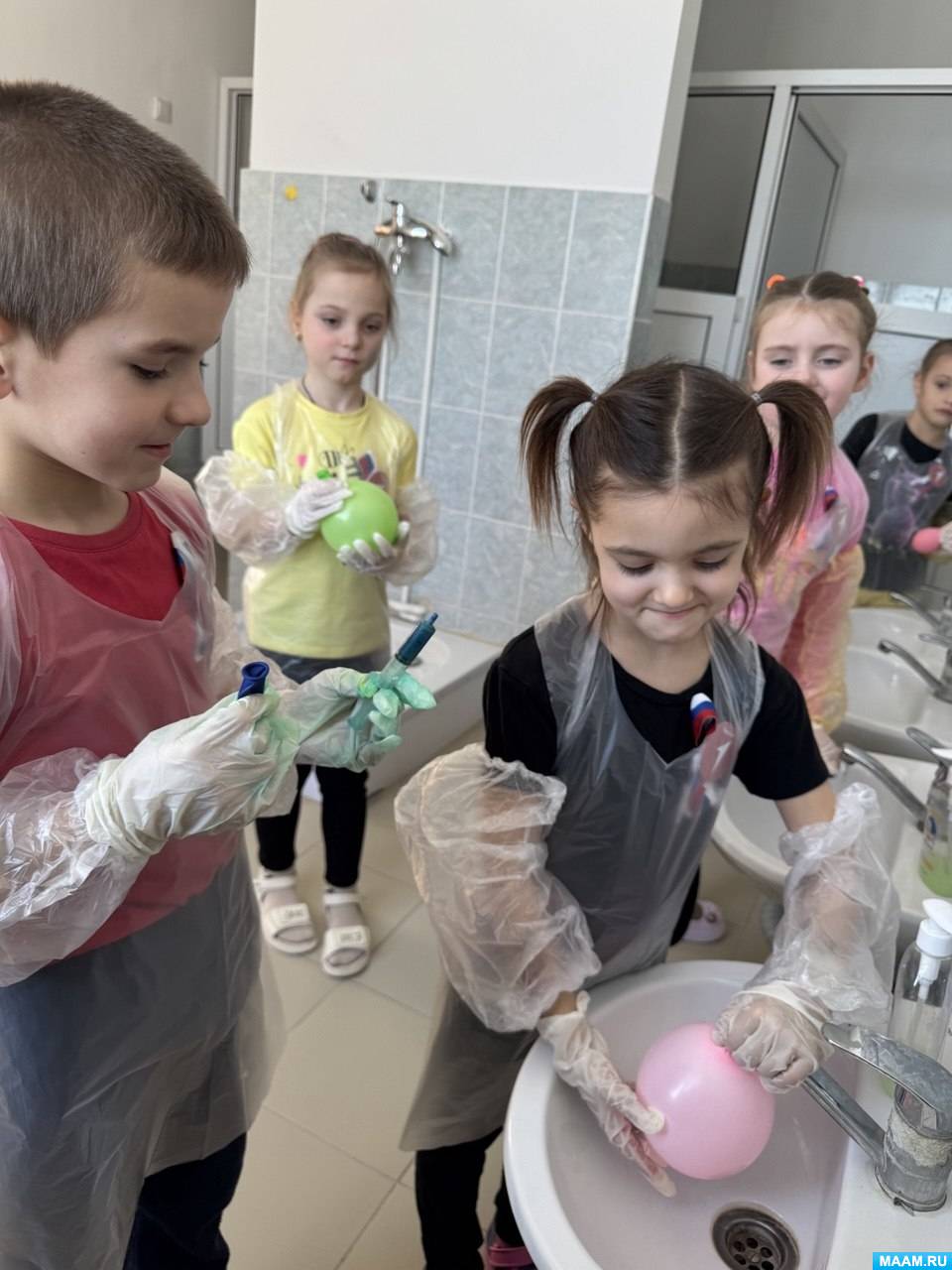 Инструктаж по технике безопасности. Например, объяснить, что при окрашивании воды нужно быть аккуратным, быть точным при заполнении форм водой, отрезать нить серединой ножниц.