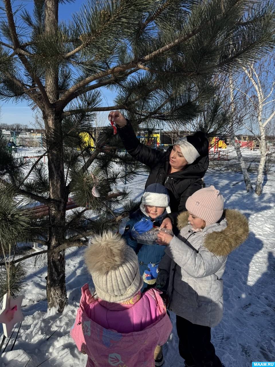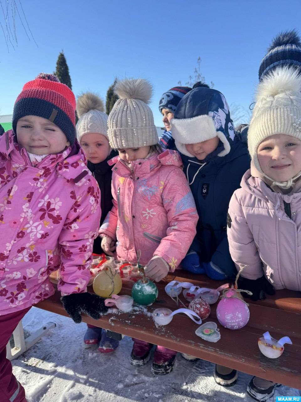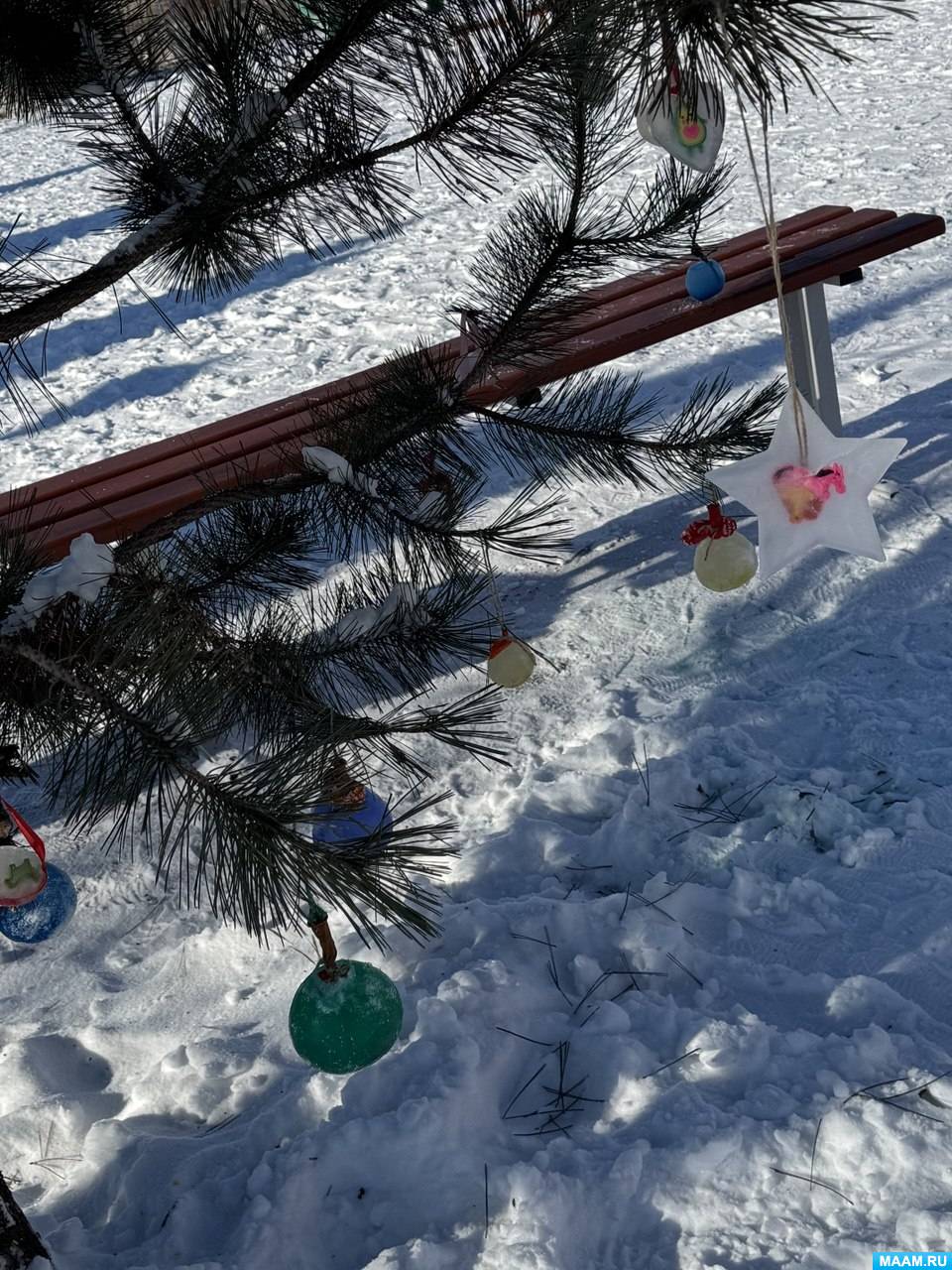 Предлагать украсить участок ледяными игрушками - например, повесить их на ёлку или вынести на улицу.