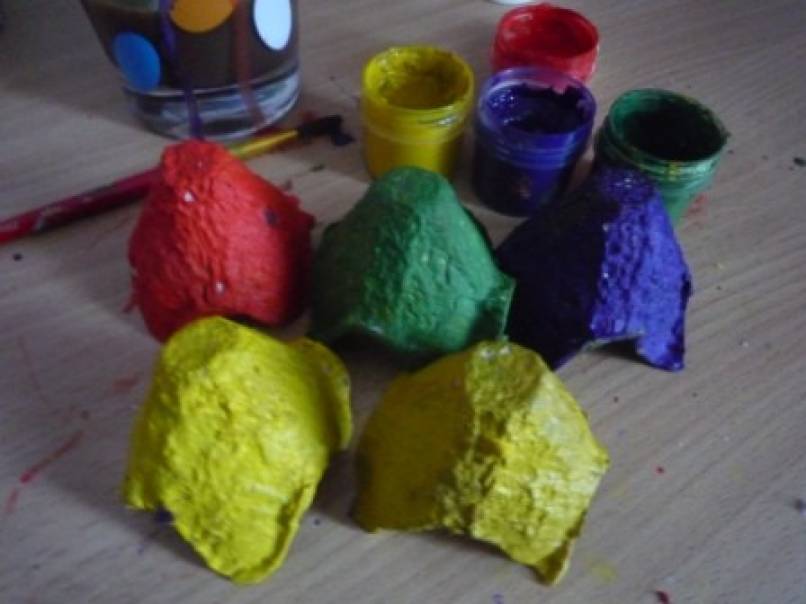 Закрашиваем разноцветной гуашью каждый.