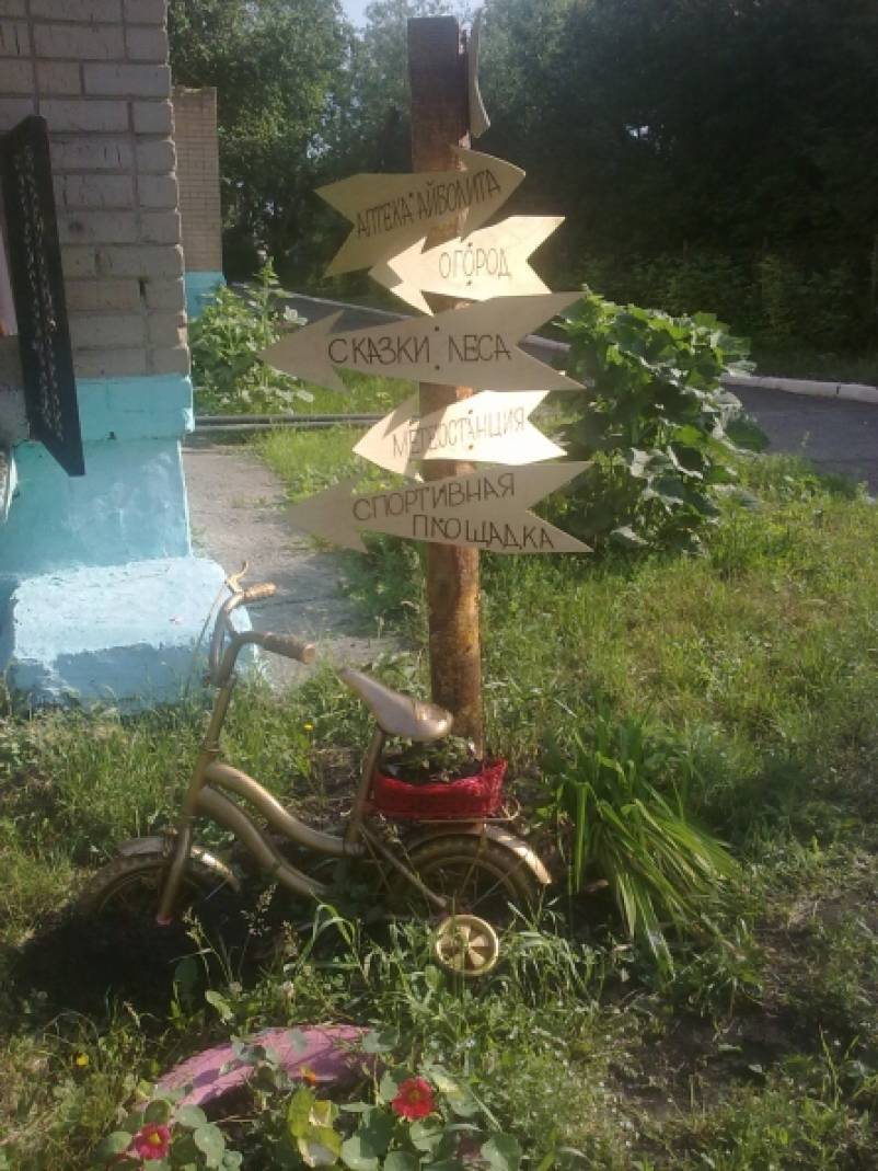 Гостей детского сада встречает указатель направлений