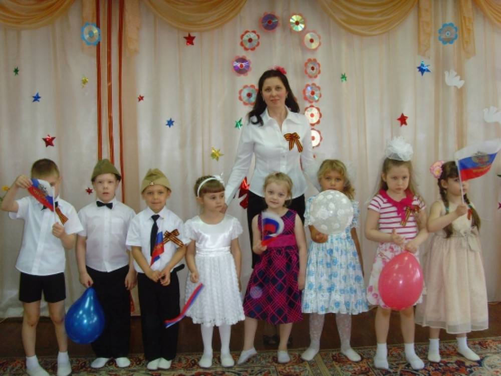 В нашем детском саду, в честь праздника Победы прошел детсадовский парад. Дети исполняли песни, читали стихотворения, танцевали