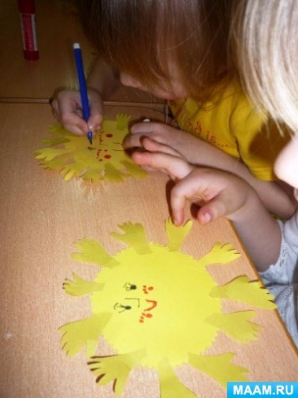 Делали мы с ребятами и сувенир на Масленицу в виде солнышка,подарок для семьи.
