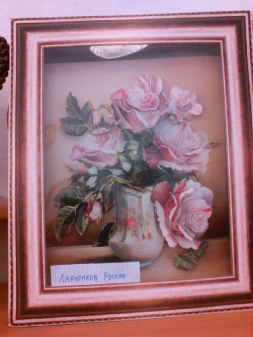 Ко Дню Матери, который в 2014 году в России отмечался 30 ноября в нашей группе была организована выставка работ, выполненных мамами. Если мама чем-либо увлекается и у неё уже есть готовые работы предлагалось принести их, можно было так же сделать что-то специально для выставки вместе с ребёнком. Мамы были очень рады организованной выставке и откликнулись многие неравнодушные. Я считаю, что это очень помогло нашим мамам дополнительно раскрыться друг для друга, что способствует сплочению родительского коллектива группы. Кроме того, всегда, любому человеку приятно услышать похвалу и доброе слово в свой адрес, что и было сделано воспитателями. Это, в свою очередь, сделало более тёплыми и доверительными отношения между родителями и воспитателями.