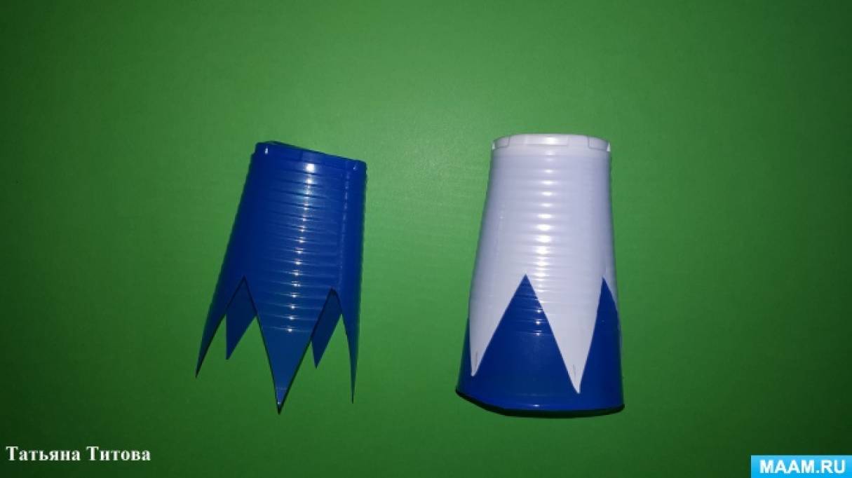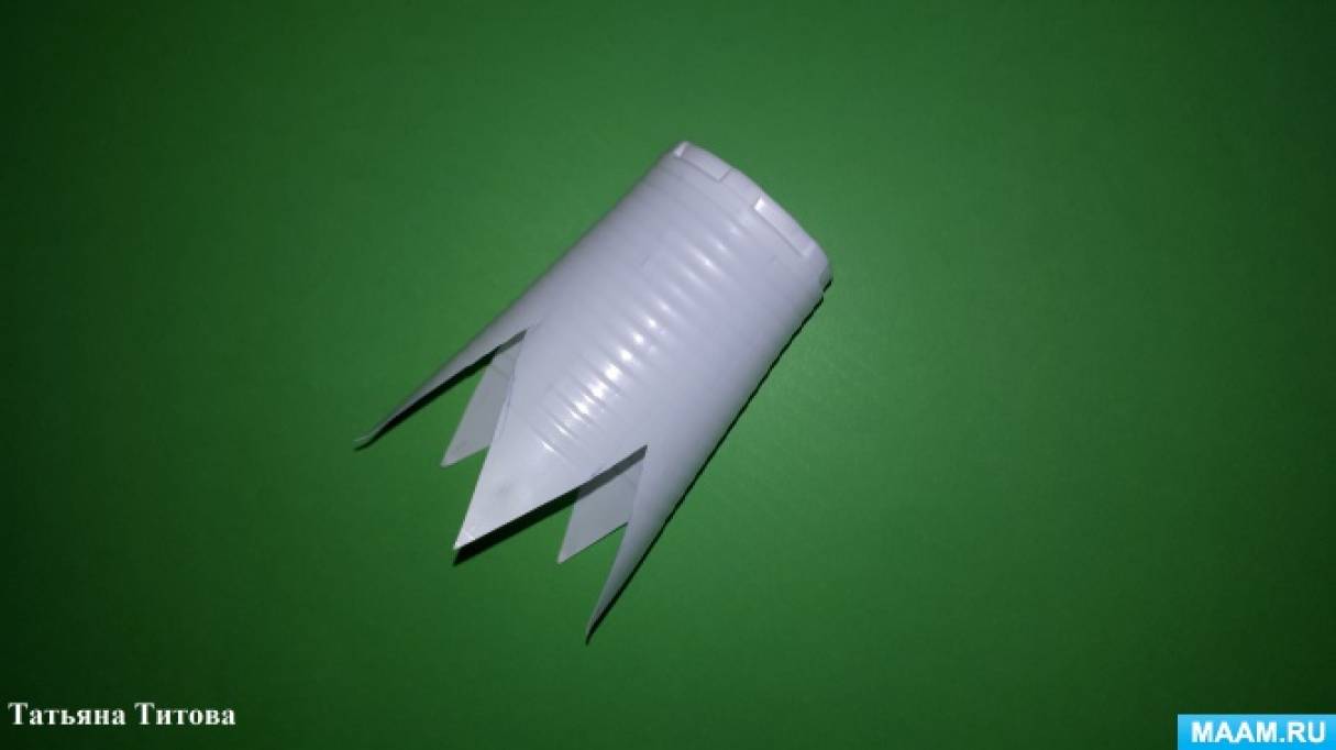 Шаг 2. На белом стаканчике делаем разметку цветка с 5 лепестками, вырезаем.