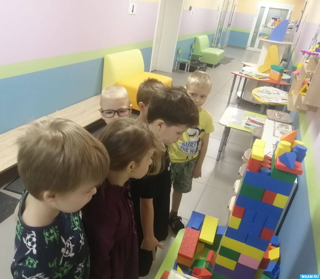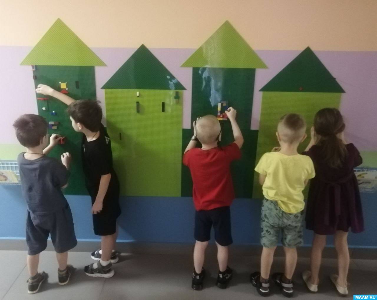 , дошколята попробовали свои силы на настенном «Городе Лего»