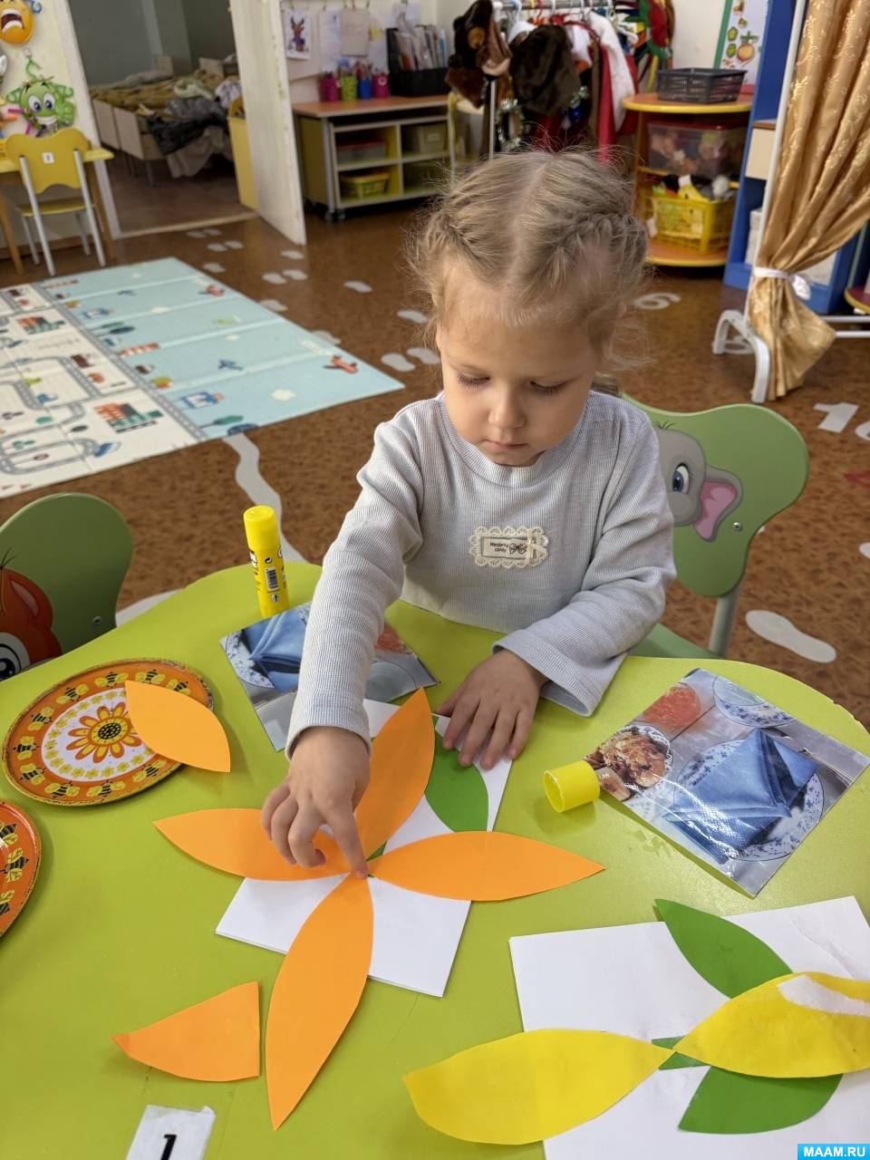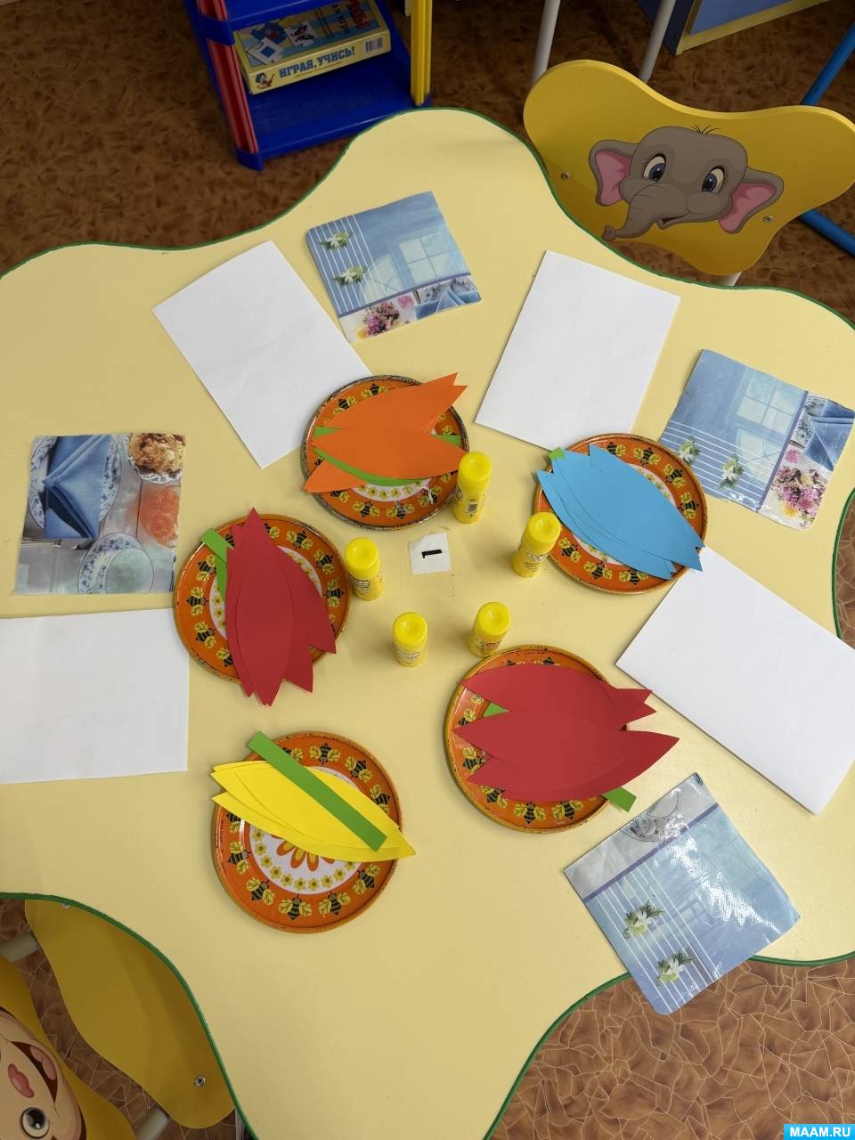 Альбомные листы, клей, салфетки, готовые вырезанные детали из цветной бумаги, на каждого ребёнка; ватман, цветная гуашь.