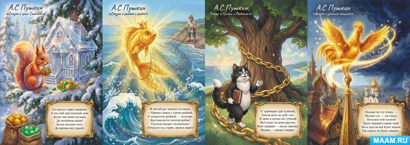 Передвижка/плакаты с героями сказок и стихов Пушкина.