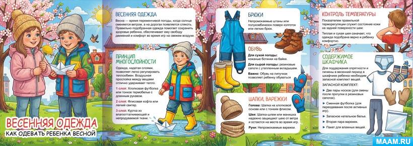 Передвижка "Весенняя одежда: как одевать ребенка весной" - консультация для родителей дошкольников.