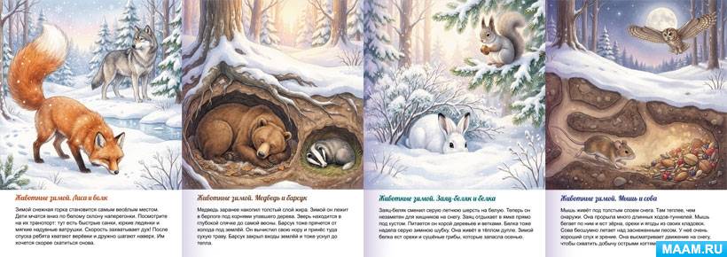 Графические дидактические материалы для скачивания. Тема «Животные зимой. Как звери готовятся к зиме».