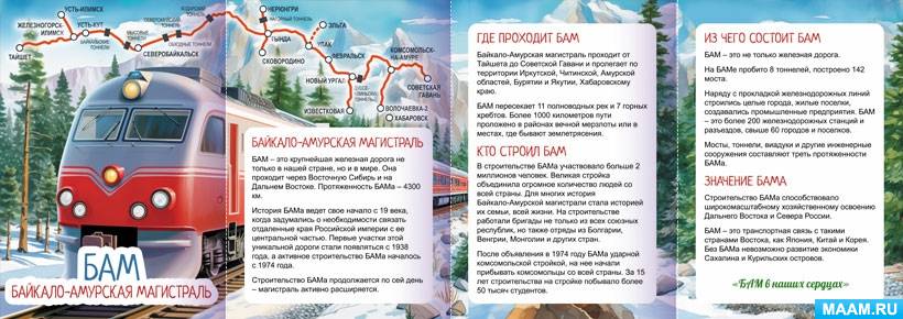 "БАМ - Байкало-Амурская магистраль" - передвижка для родителей из серии "Расскажите детям". Что такое БАМ, значение для России, история строительства БАМа.