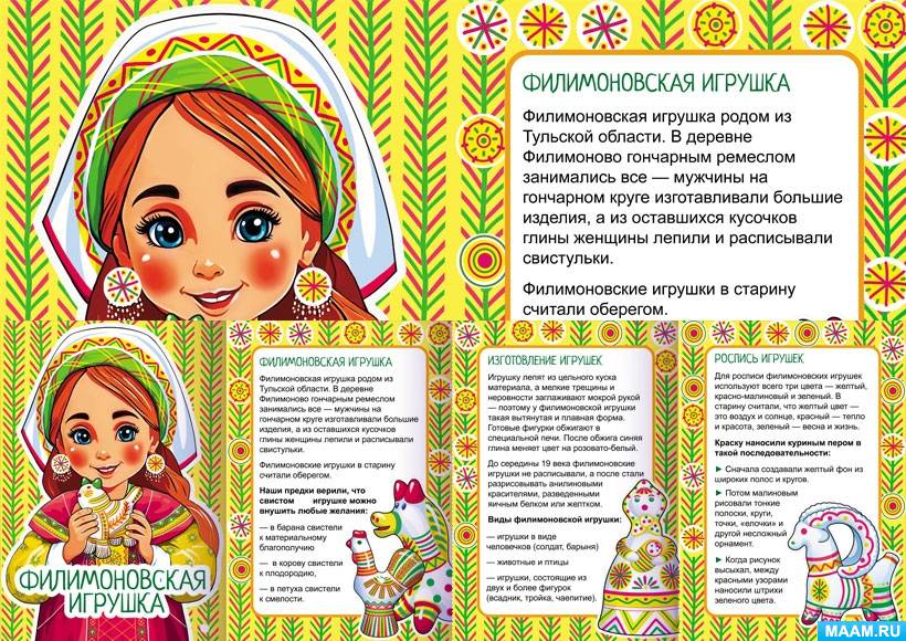 Папка-передвижка о русском народном промысле - Филимоновской игрушке. История возникновения, как игрушки делают и как расписывают.