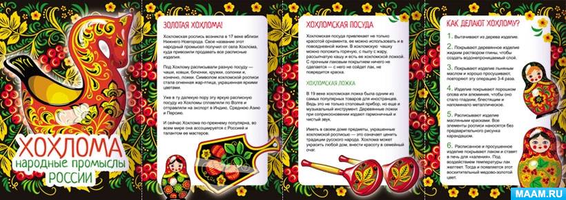 Папка-передвижка для родителей (расскажите детям) с информацией о русском народном промысле - Хохломе. История хохломы, особенности, процесс производства.
