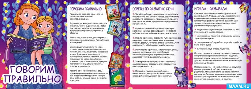 Папка-передвижка для родителей "Говорим правильно" о развитии речи дошкольника.