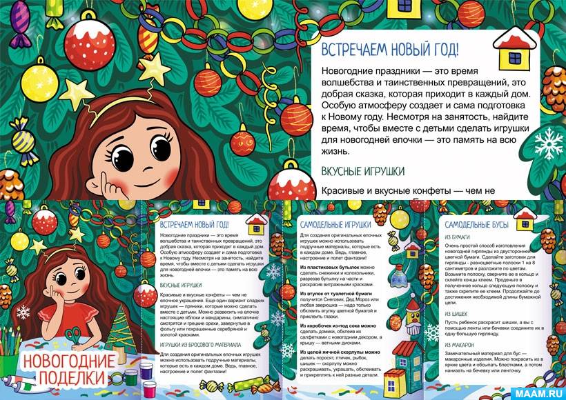 Папка-переджвижка с идеями для родителей, какие поделки можно сделать с ребенком к Новому году.