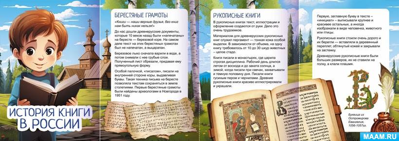 Папка-передвижка с иллюстрациями "История книги в России", "Откуда книга к нам пришла".