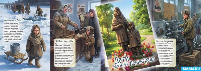 Передвижка с иллюстрациями для детей "Дети блокадного Ленинграда" (5 страниц).
