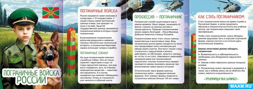 Передвижка "Пограничные войска России" для родителей и детей (проведение бесед). К праздникам "23 февраля", "День пограничника" и тематическим беседам про армии России.