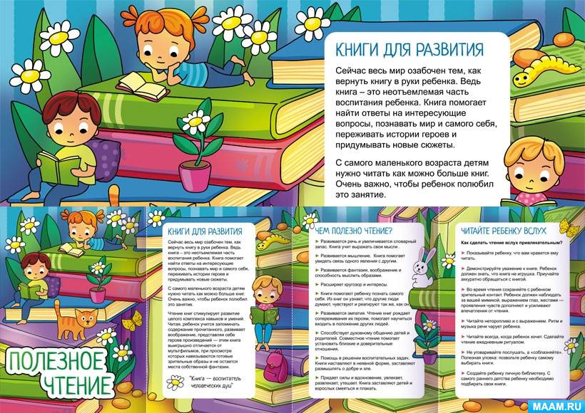 Папка передвижка о роли чтения в развитии ребенка "Полезное чтение" для родителей дошкольников.