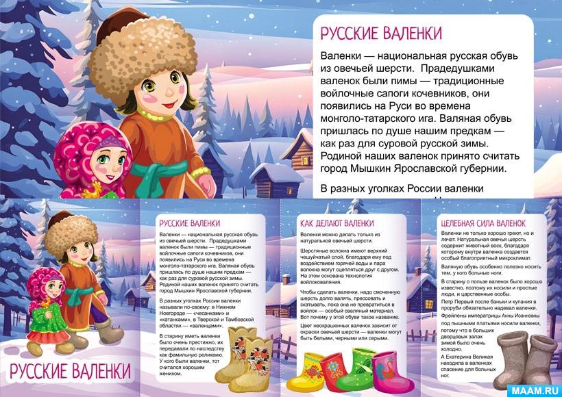 Папка-передвижка для родителей о русских валенках: история, производство, польза.