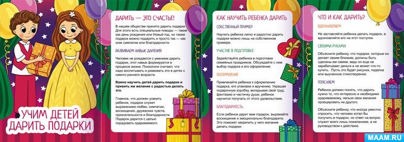 Папка-передвижка для родителей с консультацией по теме "Как научить детей дарить подарки".