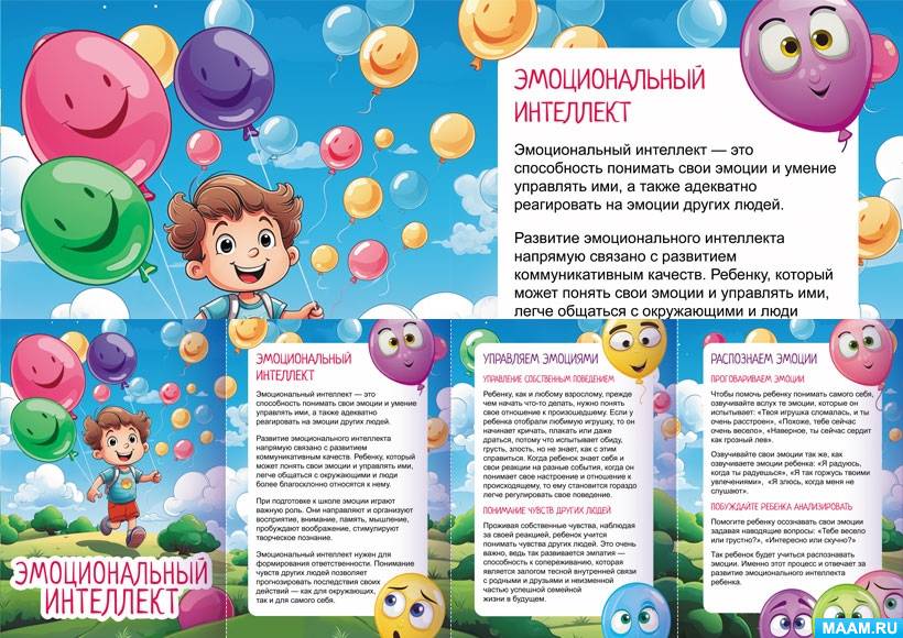 Папка-передвижка для родителей "Эмоциональный интеллект": что это такое, для чего он нужен, учим детей распознавать свои эмоции.