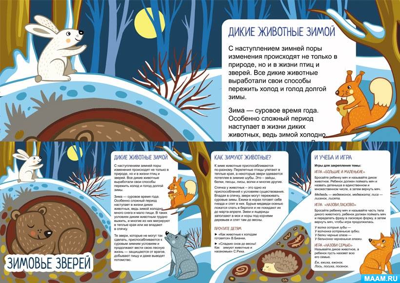 Папка-передвижка для родителей и детей о зимовье диких животных. Закрепляем тему диких животных зимой.
