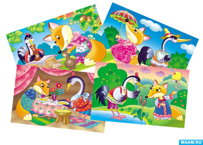 Лиса и журавль. Карточки для лэпбука по русским народным сказкам.