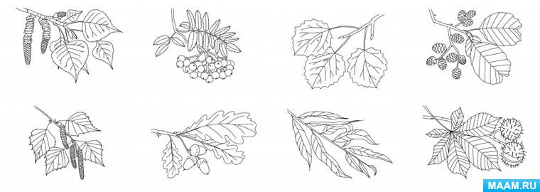 Листья деревьев. Раскраски