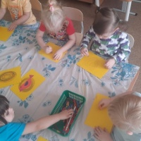 Цель: Побуждать детей создавать аппликацию из основных геометрических фигур. Знакомить детей с элементарной техникой рисования восковыми мелками. Задачи: - знакомить детей с техникой рисования восковыми мелками; - учить правильно...