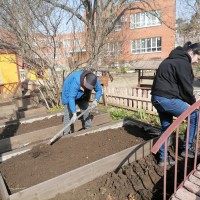 Фотоотчет о субботнике для родителей «Весенний день год кормит» по обустройству стационарных грядок