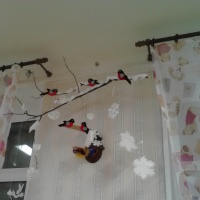 Однажды поздней осенью, гуляя с детьми на площадке после сильного ветра, мы нашли сломанную ветку. Эта была молоденькая веточка. Нам с детьми было жалко выбрасывать ее. Подумав, мы с детьми решили продлить ей жизнь, и повесили ее...