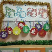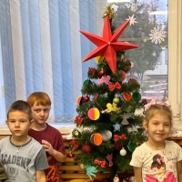 Новогоднее оформление групповой ячейки руками малышей (от года до двух)