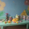 Уголок музыкального развития, здесь индивидуальные погремушки с меткой ребенка. Это фотографии квартиры на веранде. Самодельная люлька из ящика. Это гордость нашей группы ширма из картона и скотча. Используем её для...