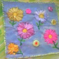 Представляю ещё одну мою работу которую выполнила в один прекрасный летний вечер. Выполнена из атласных лент, ткань раскрашена красками гуашь. Это моя единственная работа в этой технике. Делалась без всякой задумки. Цветы это...