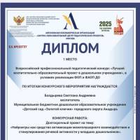 Немного о себе: Я выбрала профессию воспитателя, чтобы быть всегда в творческом и интеллектуальном развитии, быть новатором для детей. Ведь педагог должен всегда совершенствоваться. Быть воспитателем – это не стоять на месте, а постоянно находиться в творческом поиске нового и интересного. Воспитатель постоянно должен совершенствовать свое мастерство, используя достижения педагогики и психологии, быть открытым к инновациям и новым технологиям. Я горжусь тем, что я воспитатель. Ведь это значит, что я сильный духом человек, который готов вести за собой, помогать, растить, обучать, а главное грамотно воспитывать. И знаете, я считаю, быть воспитателем – это быть в первую очередь человеком и научить быть человеком ребёнка. Награды